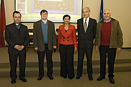 Monseñor Andrés Arteaga, profesor Dante Minniti, doctora Cecilia Sepúlveda, profesor Félix Mirabel y doctor Norbel Galanti. |