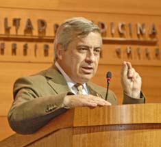 Durante la ceremonia de bienvenida a los estudiantes de postítulo de la Escuela de Postgrado de la Facultad de Medicina de la U. de Chile, celebrada el 31 de marzo en el Aula Magna del Campus Norte, el ministro de Salud, doctor Jaime Mañalich, señaló que en las circunstancias actuales se hace necesario establecer un nuevo trato entre el Estado y las universidades.