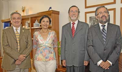 Doctores Jaime Mañalich y Cecilia Sepúlveda, junto al rector Víctor Pérez y el