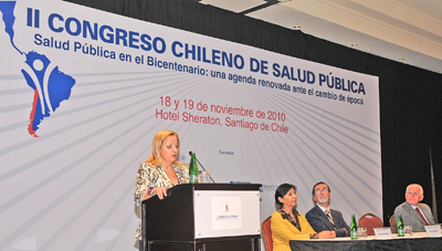 La ceremonia de inauguración fue encabezada por la Subsecretaria de Salud Pública, Dra. Liliana Jadue, y contó además con la presencia del Rector de la Universidad de Chile, Prof. Víctor Pérez; de la Decana de la Facultad de Medicina, Dra. Cecilia Sepúlveda y del Director de la Escuela de Salud Pública y Presidente del Congreso, Dr. Giorgio Solimano. También hubo representantes del sector público y privado de salud y de las once instituciones que conformaron el Comité Científico.