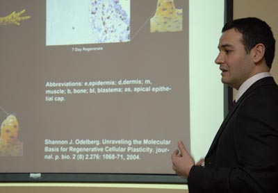 La investigación la realizó el doctor Manuel Meruane, tesista del Laboratorio de Embriología Comparada del Programa de Anatomía y Biología del Desarrollo del Instituto de Ciencias Biomédicas del plantel, proyecto en el cual cultivó células madres extraídas de tejido adiposo sobre un sustituto dérmico artificial llamado Integra, para luego injertarlo en piel con extensas y profundas zonas dañadas, logrando no sólo una mejor cicatrización sino que, además, estimulando la producción de colágeno y la formación de vasos sanguíneos en el área.